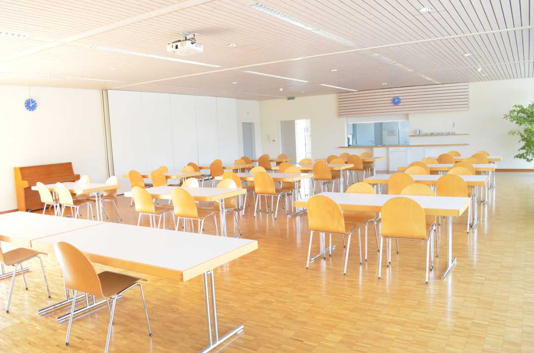 Mittels integriertem Trennwandsystem, kann der Raum auch für kleinere Festlichkeiten genutzt werden